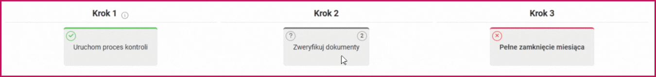 Kiedy wszystkie dokumenty zostaną oznaczone jako sprawdzone, możesz przejść do kolejnego kroku zamykania miesiąca.