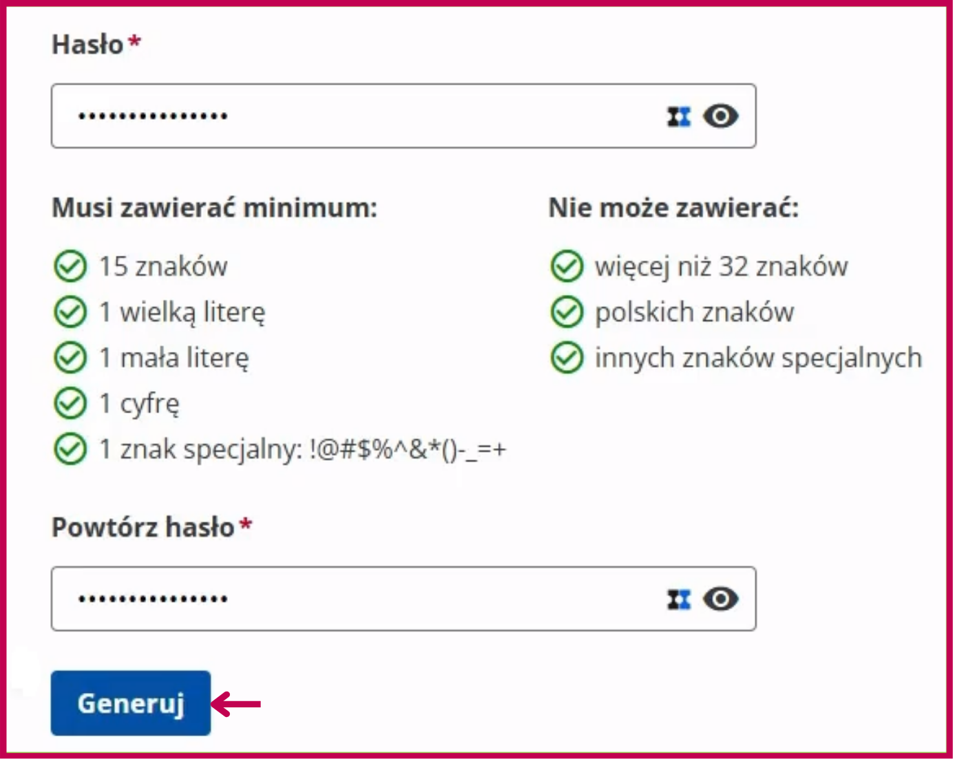 Uwaga: Hasła nie można zresetować — zapisz je i przechowuj w bezpiecznym menedżerze haseł!